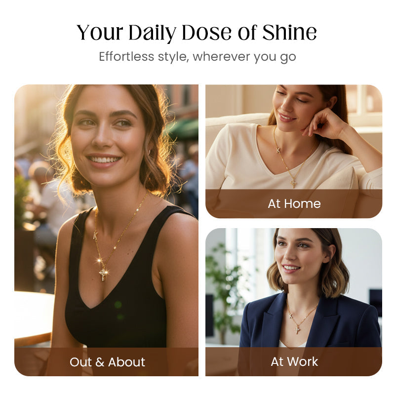 ELEGANT CROSS PENDANT - A beautifully crafted cross, adorned with sparkling stones, serves as a symbol of faith and devotion. It adds a touch of timeless grace and spiritual significance to your daily ensemble.