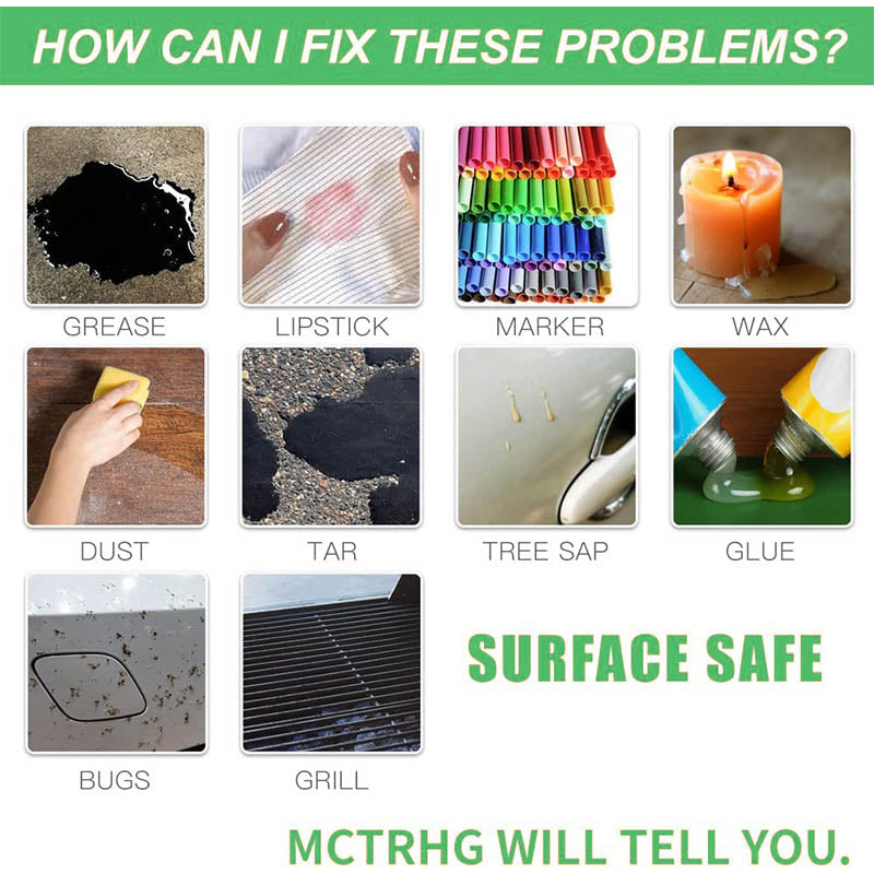 Easily remove self-spray paint, flying paint, asphalt, small black spots, gum, resin, tree oil, shellac, double-sided tape, self-adhesive, offset printing, glue marks, etc.