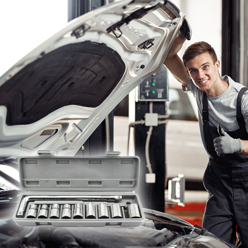 10PCS 1/2-inch Drive Socket Set with L Wrench