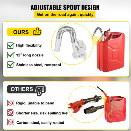 ā›½ļøDurable material:Ā This spout is made of high quality stainless steel, high strength, sturdy and durable, not easy to rust or break, wear-resistant, has a long service life.