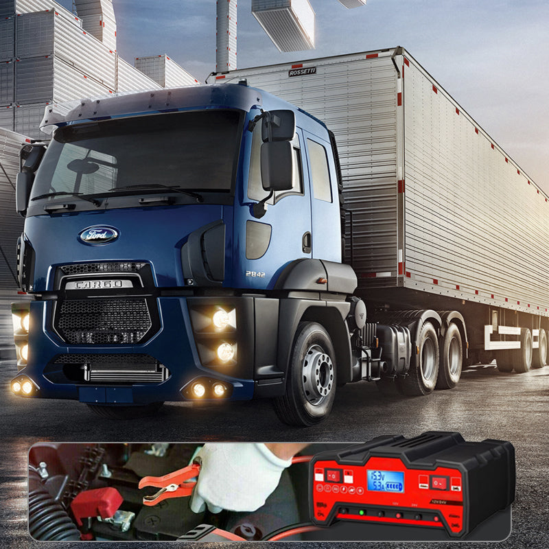 WIDE APPLICATION - Suitable for all 12V or 24V batteries ranging from 2AH to 400AH, including dry, water, lead-acid, and maintenance-free batteries (Not suitable for lithium batteries). Features automatic stop when fully charged and a 5-stage charging process with pulse repair to diagnose and extend battery life.