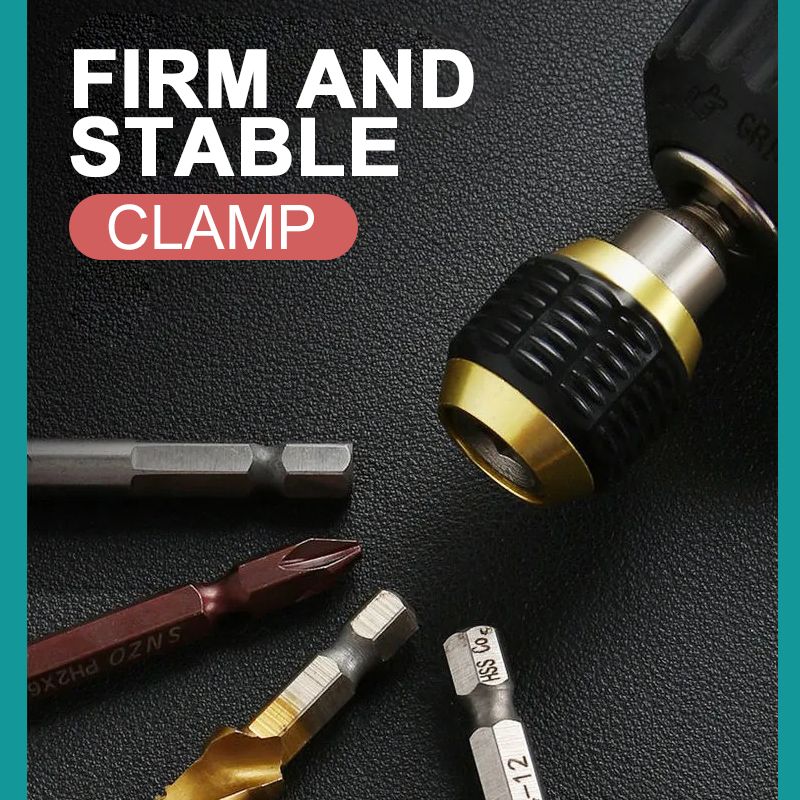 It has a built-in stability lock and high-efficiency spring which clamp the bits firmly for stable drilling without shaking.