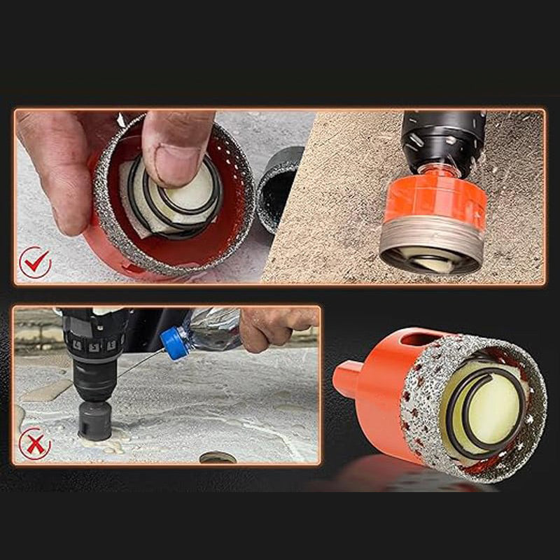 DRY AND WET DRILLING: These core drill bits are designed for both dry and wet drilling. The built-in water-absorbent sponge allows for quick cooling during wet drilling, providing a hands-free experience and enhancing drilling efficiency.