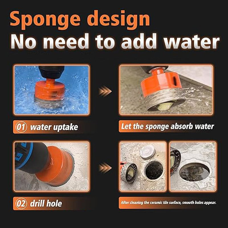 Our product features a built-in water-absorbent sponge that quickly cools down the drill bit during operation.