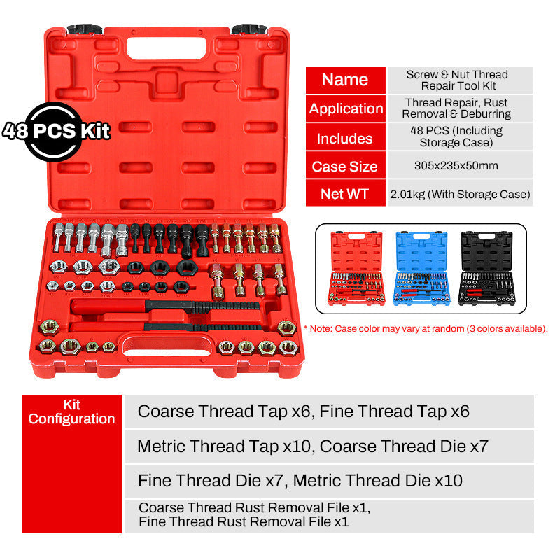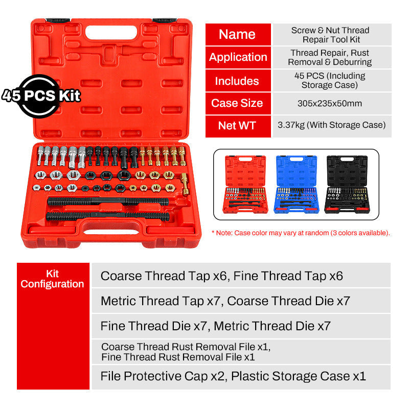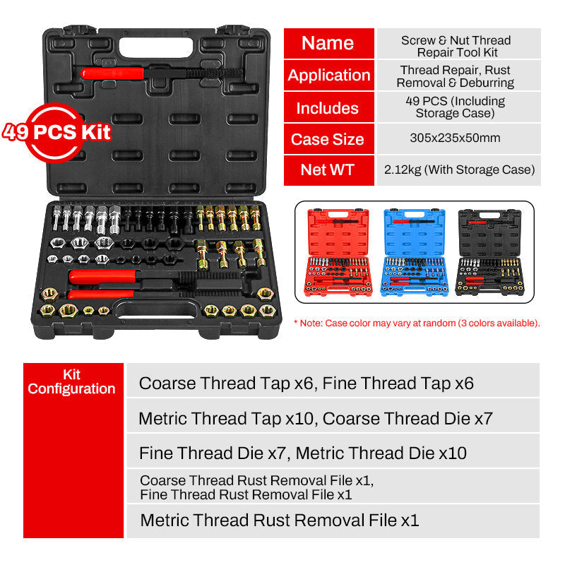 COMPREHENSIVE TOOL KIT - Tackle any threading issue with a full suite of repair tools. From minor touch-ups to major restorations, this kit provides everything you need in one convenient package.