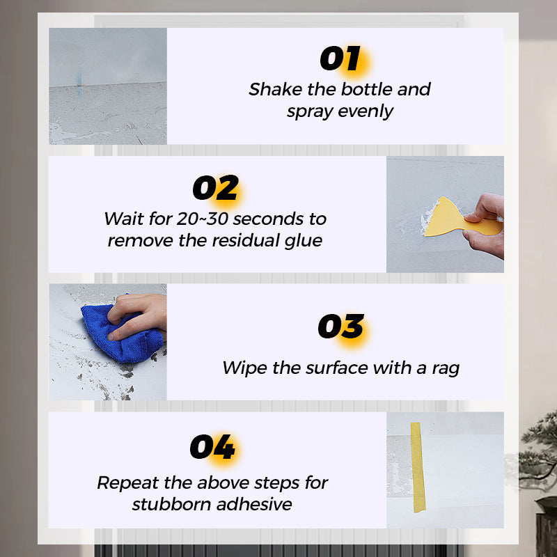 Our Multifunction Adhesive Remover Spray makes it easy and safe! 🛡️💧