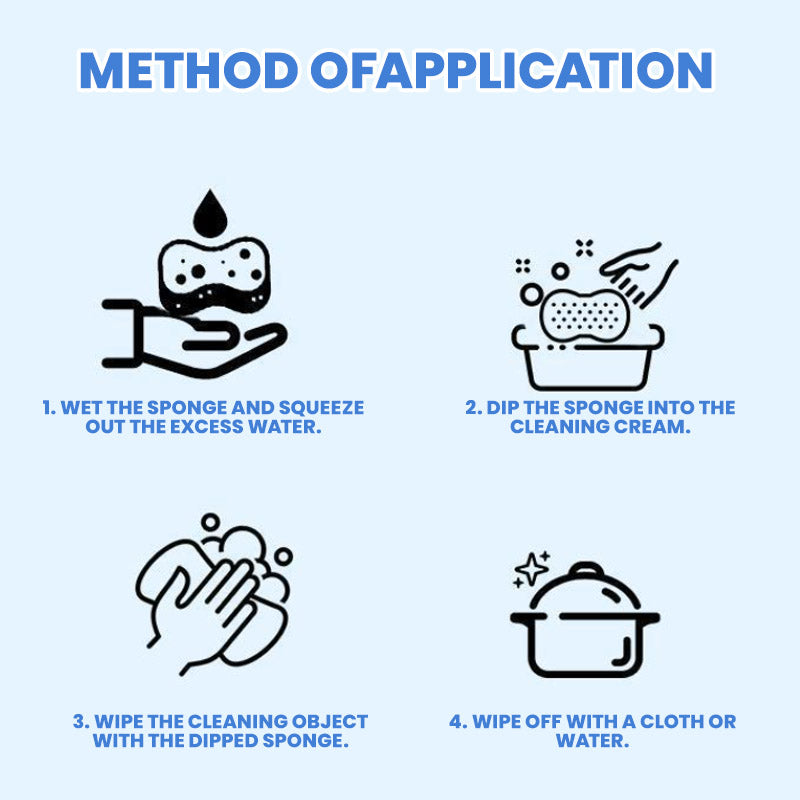 EASY CLEANING - This cleaning cream makes housework easy and efficient. Simply apply and scrub with the sponge included in the cleaning cream jar to easily remove dirt, grease and grime.