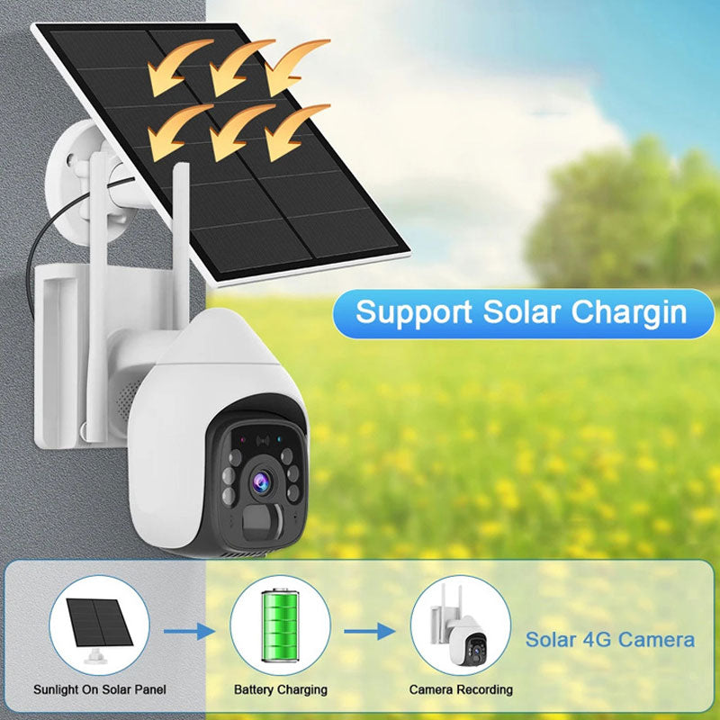 DUAL POWER SUPPLY: This camera uses a dual-mode power system, harnessing solar energy on sunny days and switching to battery power during rainy days, ensuring continuous operation and reducing your electricity bills.