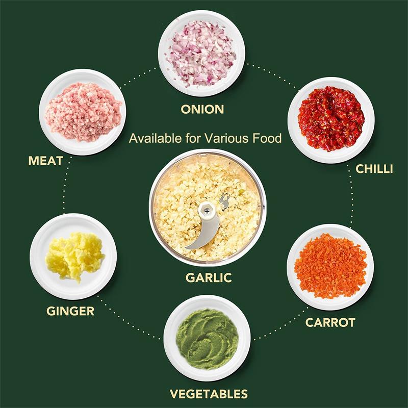 - Portable Wireless mini chopper electric: Low consumption low noise high performance motor. Light-Weight Design. It's very convenient for small kitchens, RVs, travel and camping, or other occasion.