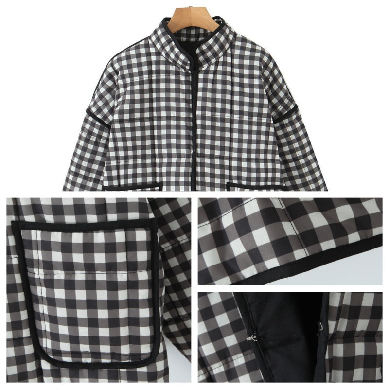 STAND COLLAR DESIGN: This coat showcases a fashionable stand collar that enhances your silhouette. The stylish plaid or printed patterns add a touch of flair, making it perfect to pair with various tops and bottoms.
