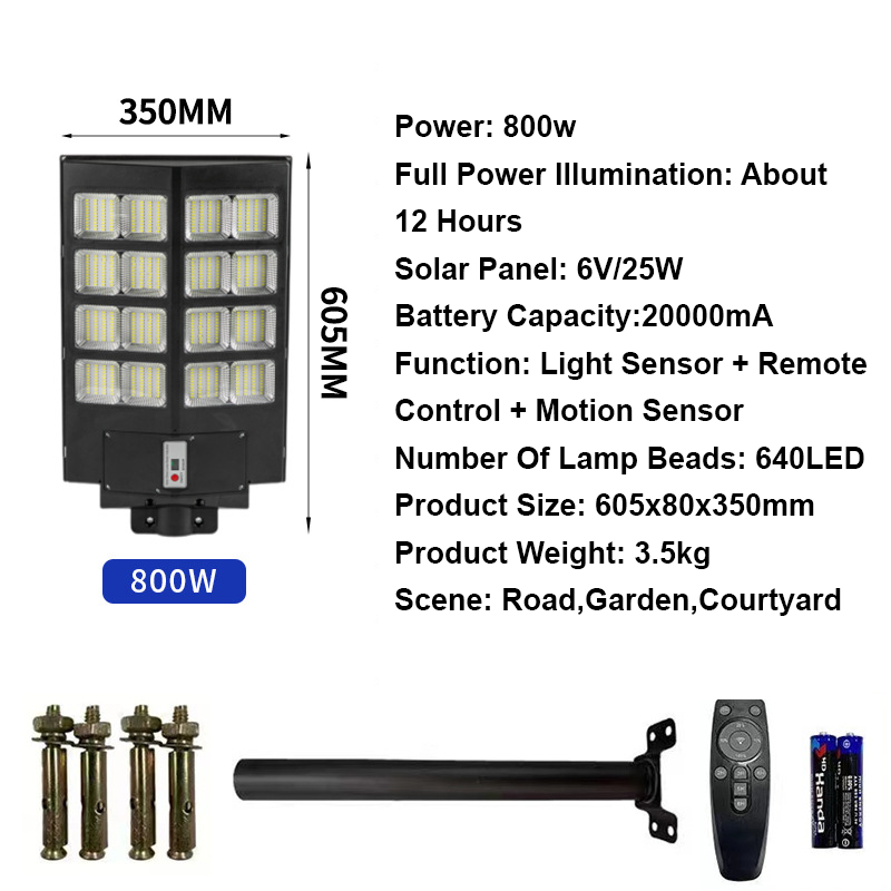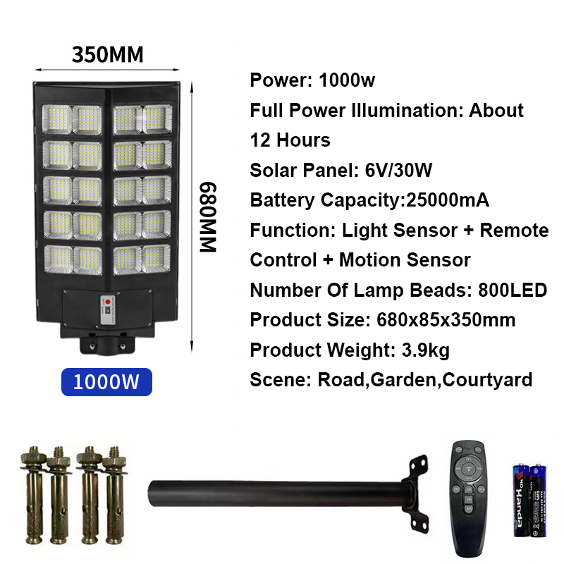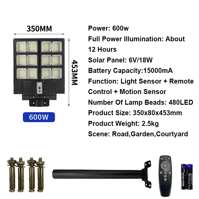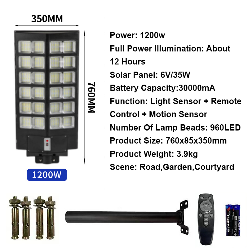 Package includes: 1 * Smart Solar-Powered Street Lamp - Motion Sensor,Remote Control