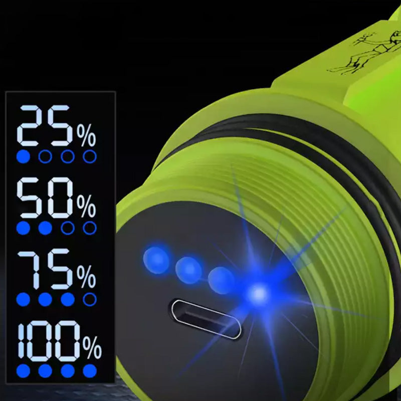 ANTI-ERROR TOUCH MAGNETIC SWITCH - The flashlight is equipped with an advanced anti-error touch magnetic switch, designed to prevent accidental activation and ensure reliable operation underwater. This innovative switch system uses magnetic technology to securely engage the flashlight's functions, reducing the likelihood of unintentional changes in settings.