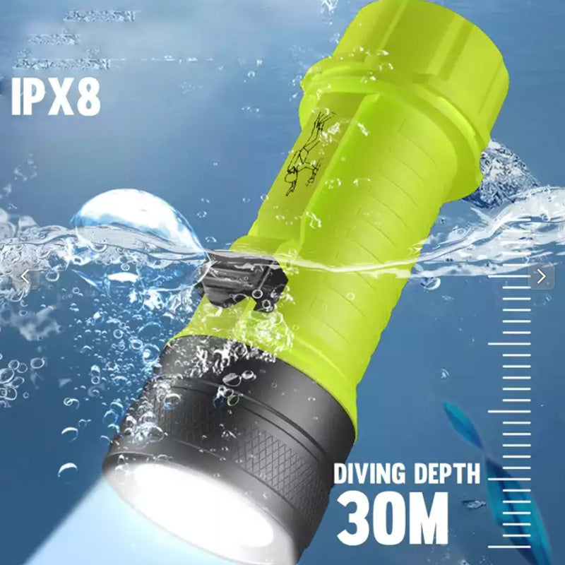 DUAL LAMP SYSTEM FOR ENHANCED ILLUMINATION - The Super Bright Dual Lamp Diving Flashlight features a sophisticated dual lamp system that provides exceptional illumination underwater. Equipped with two high-intensity LED bulbs, this flashlight delivers a powerful beam of light that penetrates even the murkiest waters.
