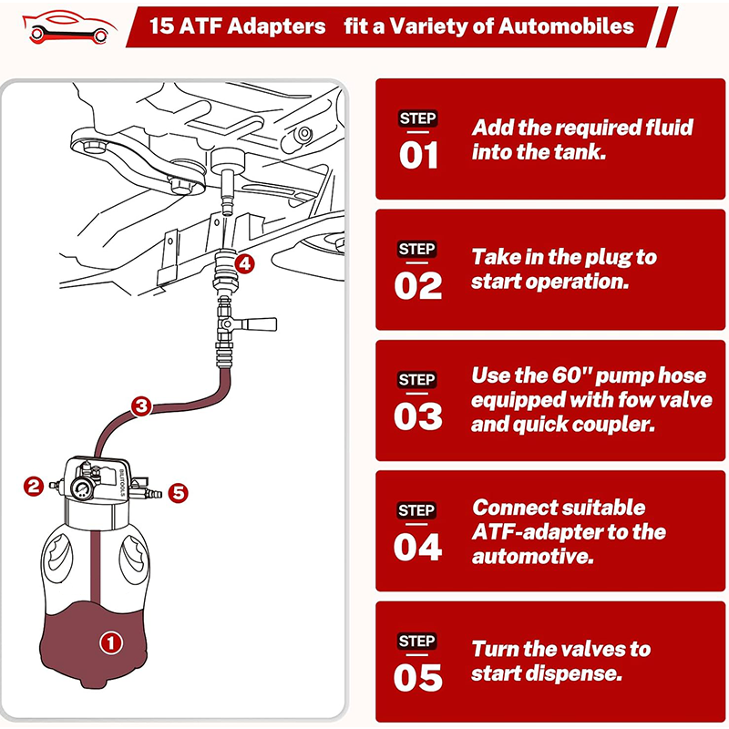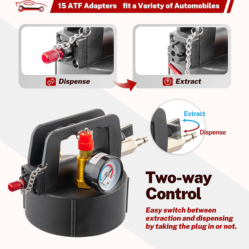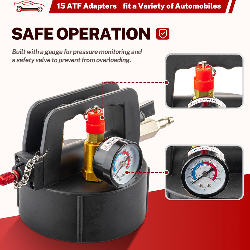 SAFETY FEATURES: This automatic transmission fluid pump built with a pressure gauge and safety valve allows to check the inside vacuum pressure while operating to eliminate any potential risks at work. The head unit is removable for easy cleaning and maintenance.