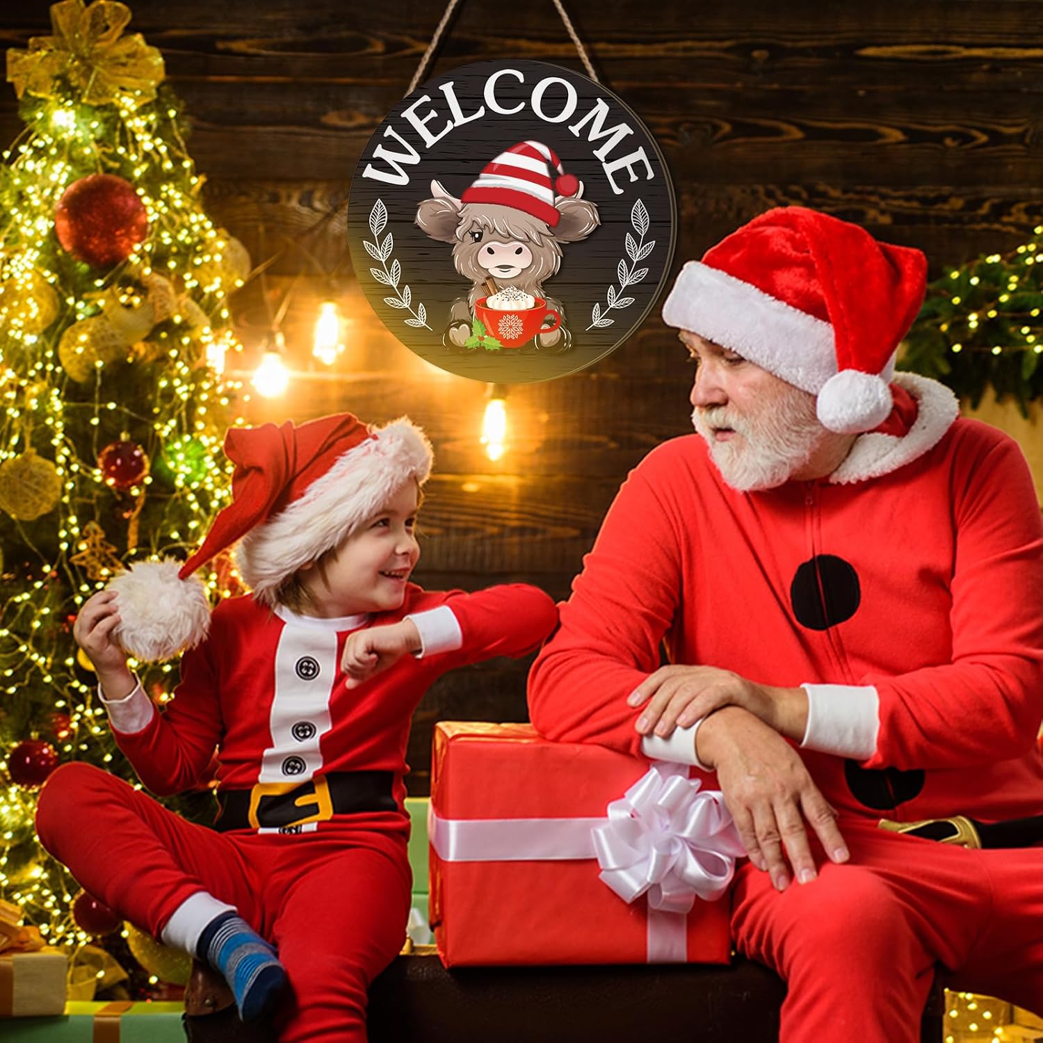 ⏰Interchangeable Welcome Sign with Highland Cow Featuring Seasonal Magnet, Detachable Hats, Accessories