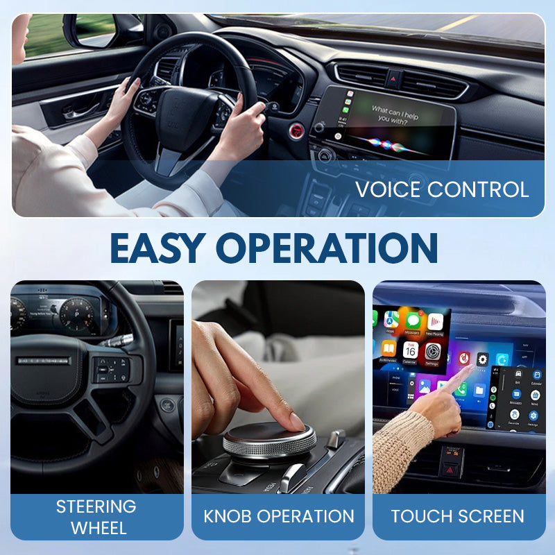 EASY OPERATION - The adapter features a USB and Type-C dual plug design, making it compatible with most cars on the market equipped with wired CarPlay. Supports voice control, steering wheel, touch screen, and knob operation, as well as split-screen display.