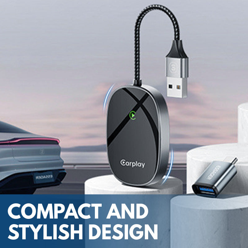COMPACT AND STYLISH DESIGN - This stylish car Carplay adapter is the perfect companion for your car! Its compact size and lightweight design make it easy to carry around without taking up much space in your car. The Carplay adapter is designed with aviation-grade aluminum alloy + 6H tempered glass, so you don’t have to worry about collisions and damage during use.