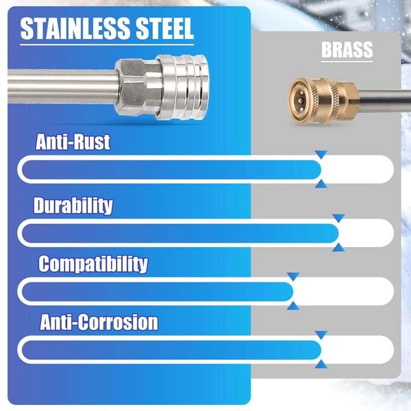 - 【Multi-option connector】: this versatile tool features a unique design with two different connector ends : a longer one for the pressure washer nozzle and a shorter one for the snow foam lance . This strategic arrangement ensures unobstructed water flow when using the nozzle, even with the foam dispenser attached.